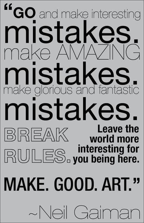 | Go and make interesting mistakes. make amazing mistakes. Make glorious and fantastic mistakes. Break rules. Leave the world more interesting for you being here. Make food art! - Neil Gaiman |